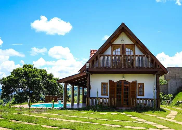 Chale Boas Novas Pirangucu Mg Villa features a terrace with views of the mountain as well as a swimming pool.